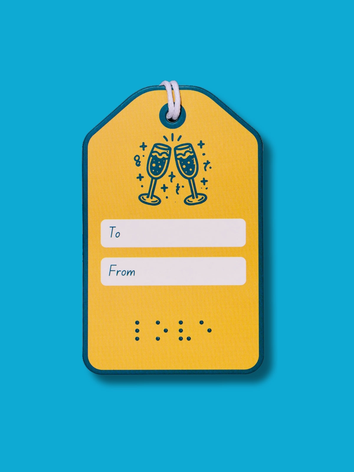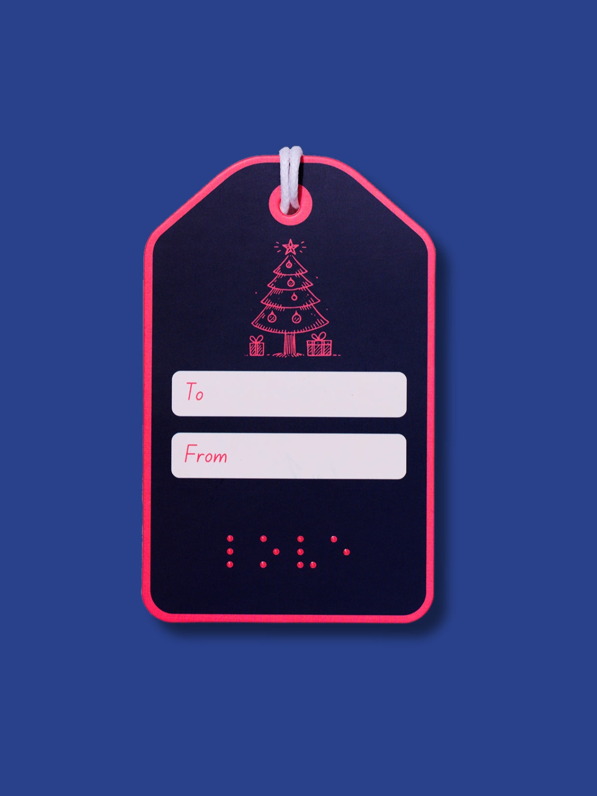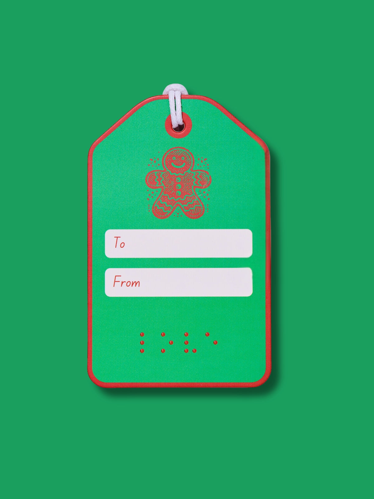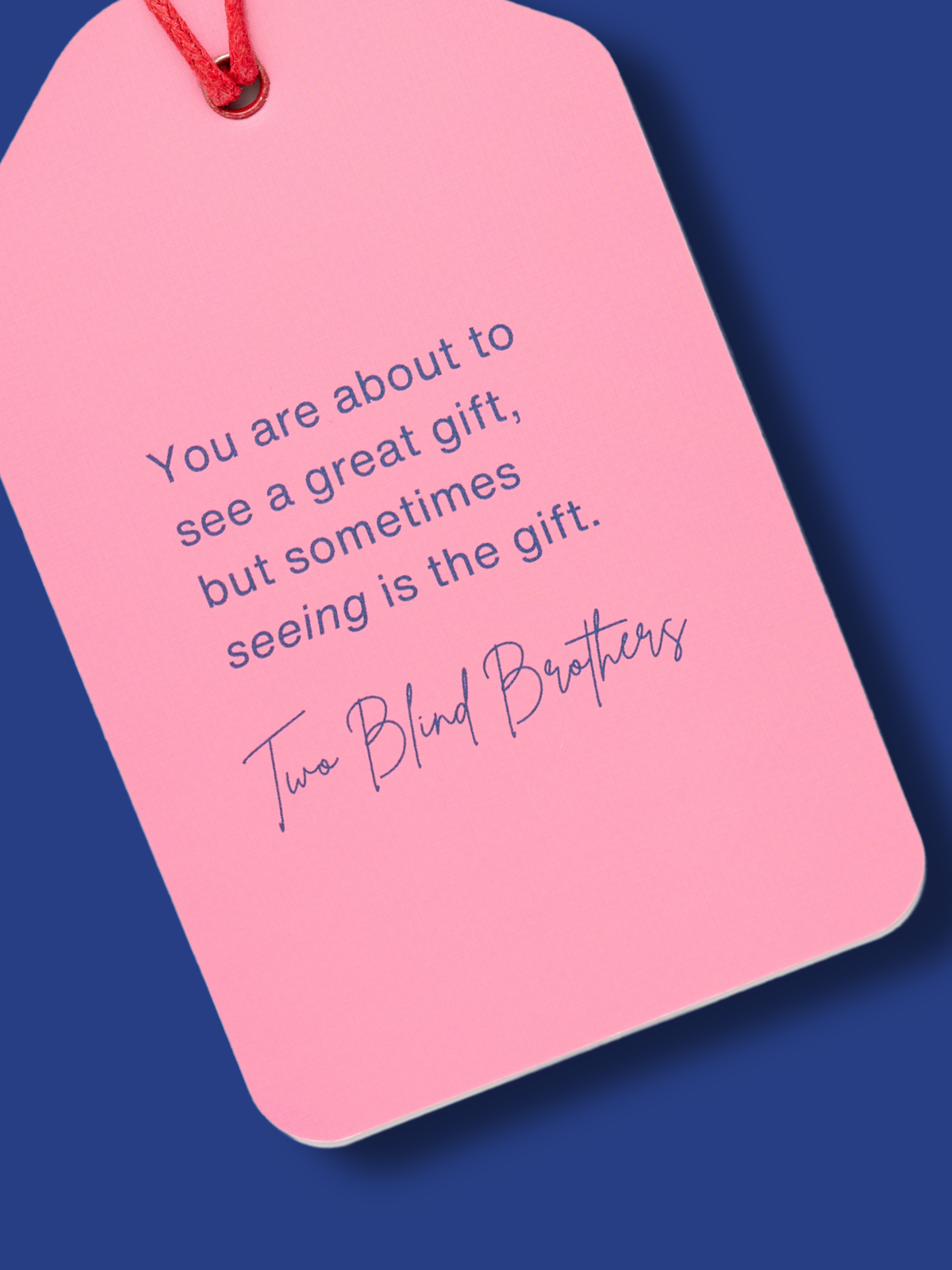 Each tag features the word love beautifully printed in braille on the front, a powerful nod to the brothers’ personal journey.